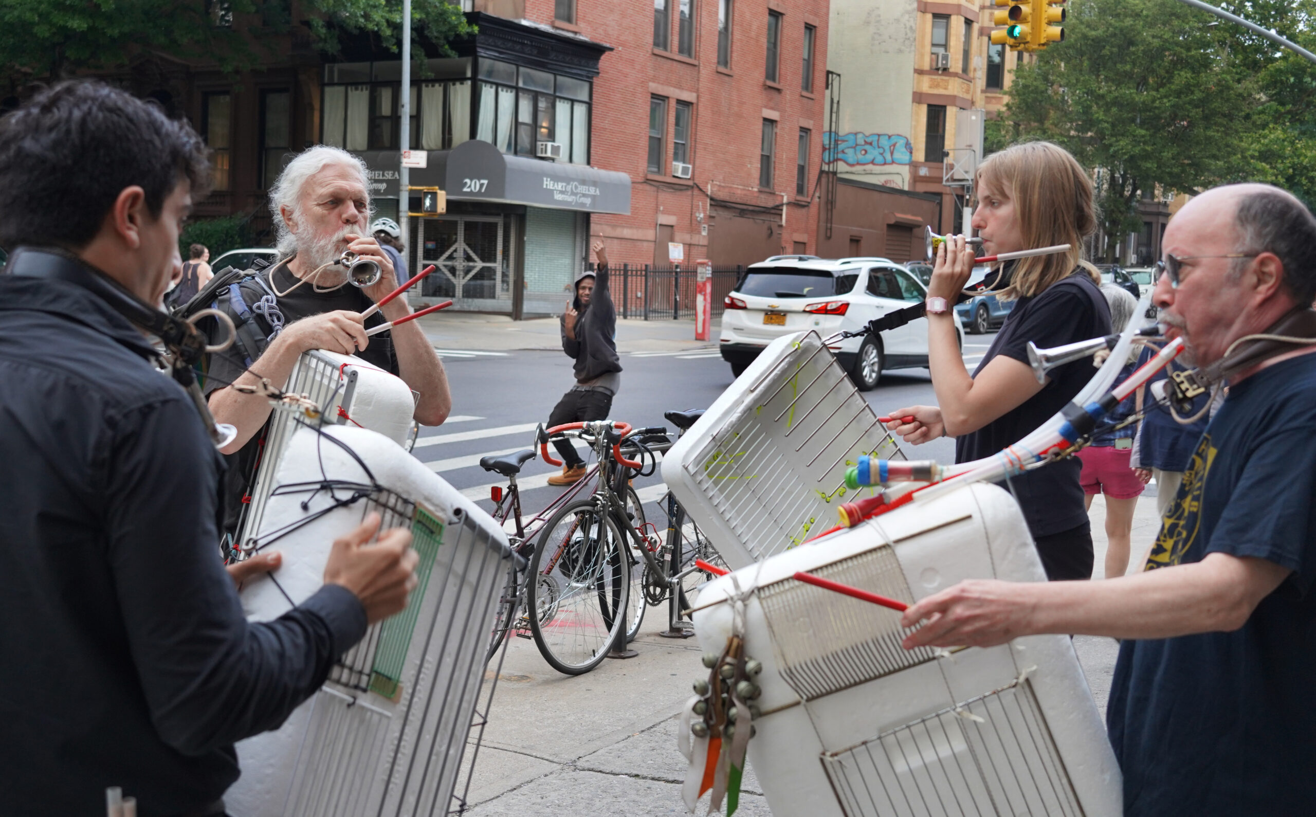 Cecilia Schmidt installing part of her site specific work, "Biota" Photo: Elise Long